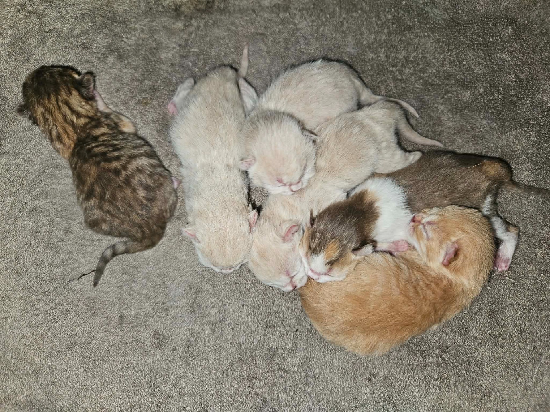 Kattungarna är nu 9 dagar gamla och börjar öppna ögonen nu.